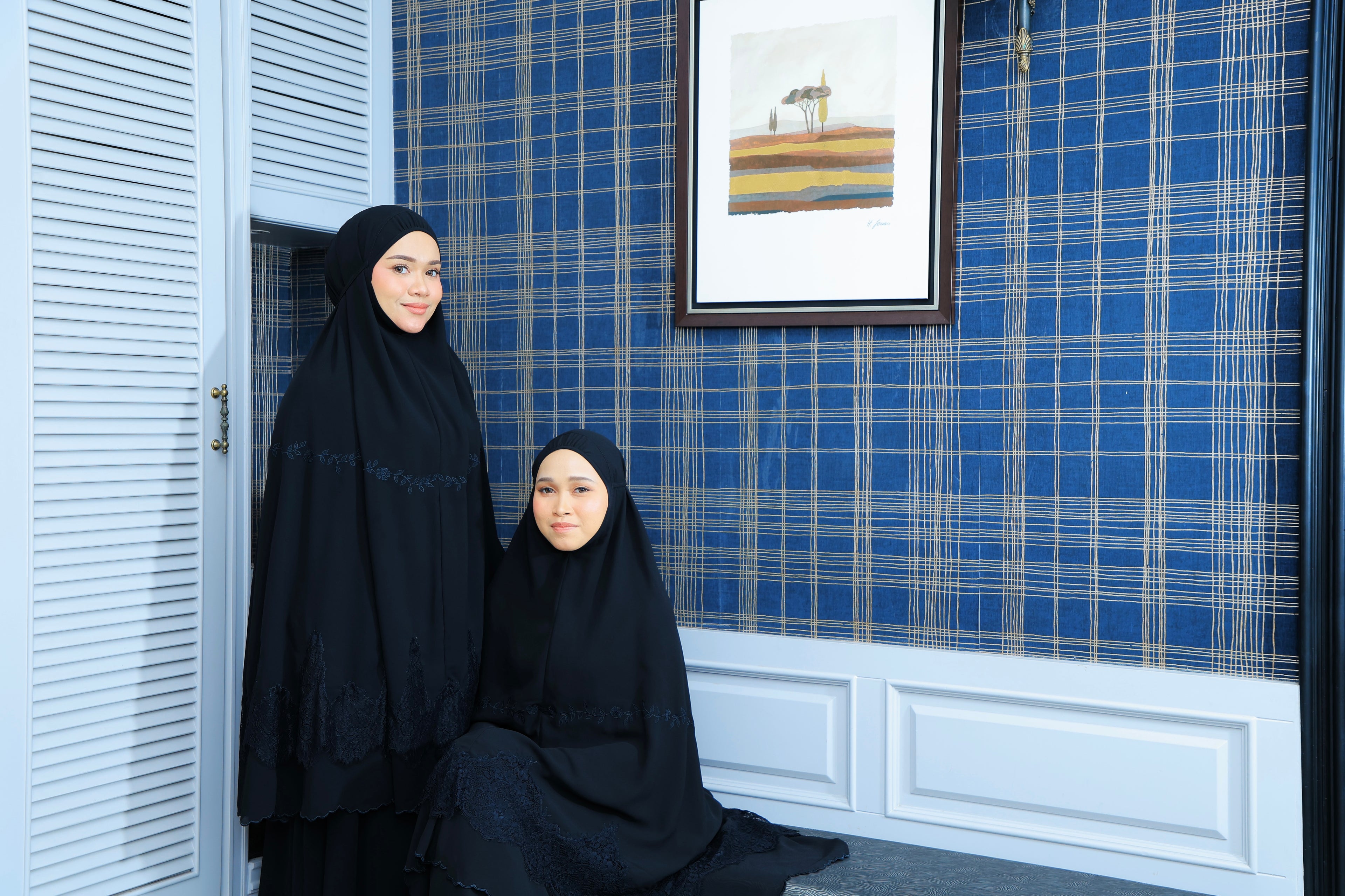 The most luxurious Telekung at Haliza Maysuri's telekung boutique. Using full lace material and armani silk fabric. This Telekung is adorened with full Swarovski crystals and comes with a pouch bag and mask.