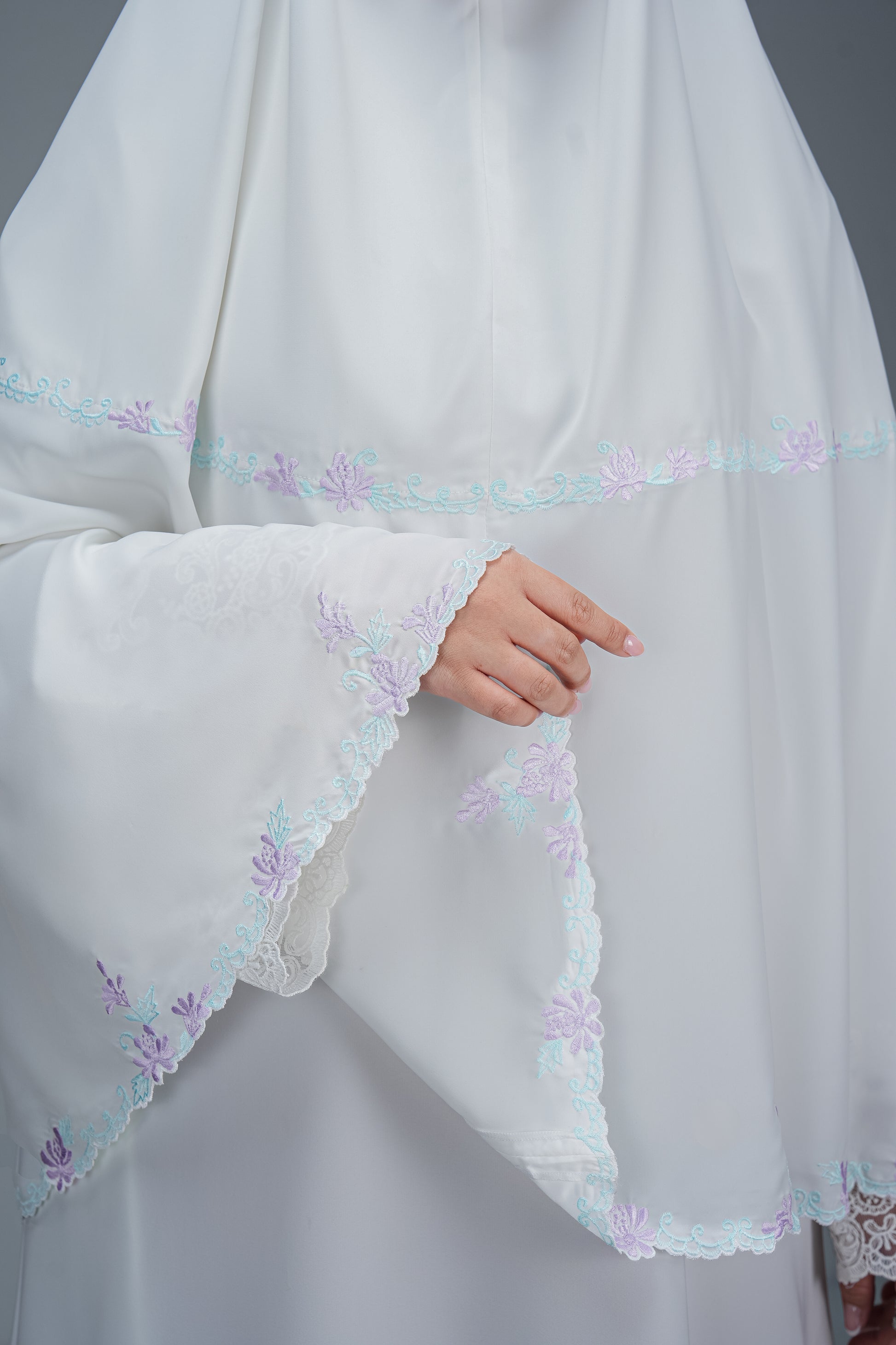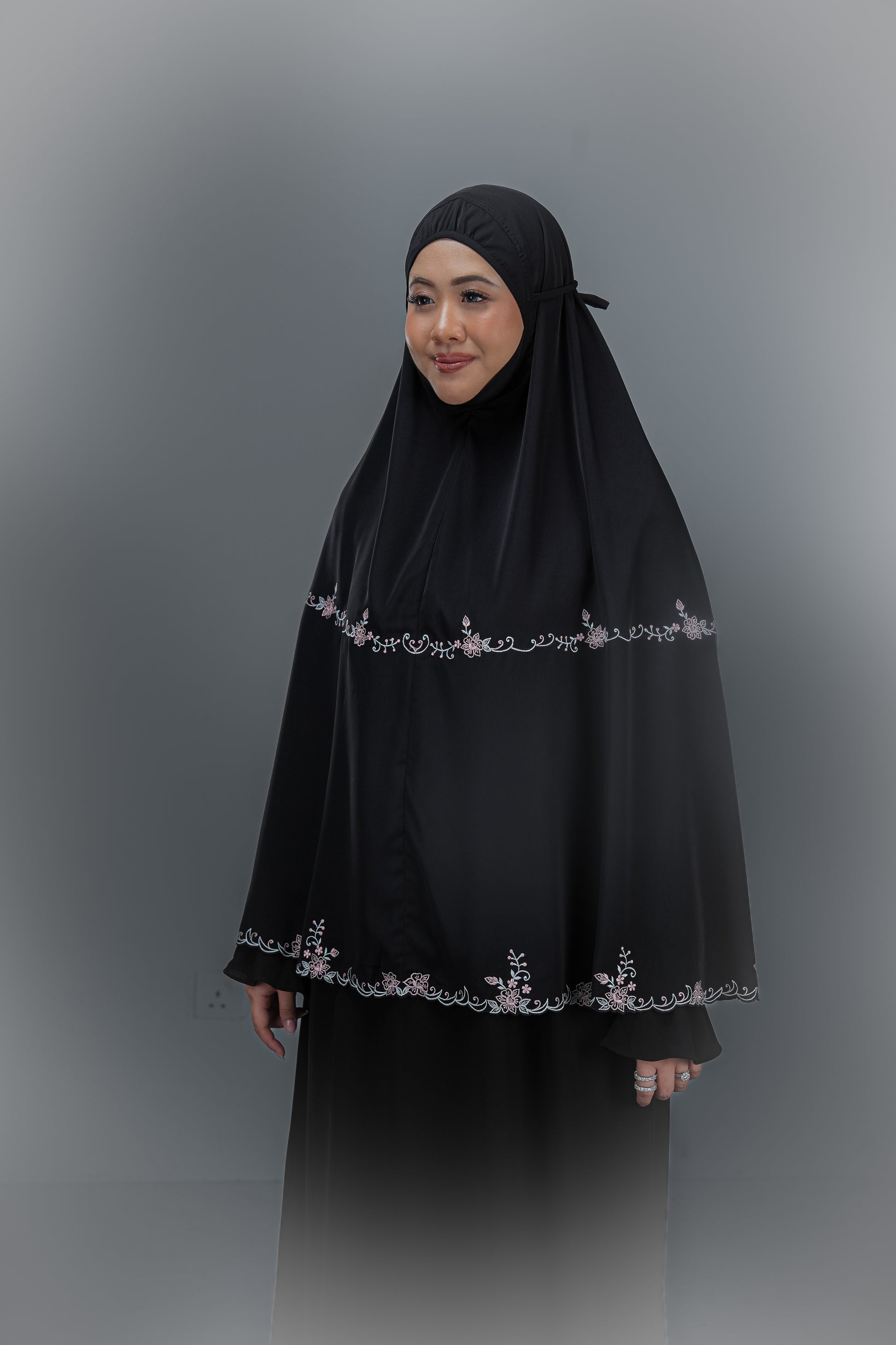 Mini Telekung Alifa is made of polyester silk fabric and designed as a solid prayer garment (TOP only). It features charming embroidery on the chest and sides. Mini Telekung includes two layers of fabric from head to chest for better protection and prevents see-through. Suitable for traveling and performing Umrah or Hajj, Mini Telekung Melati makes it easy to use and increases user comfort. Has two different base colors, namely black and white. There are also differences in embroidery colors.