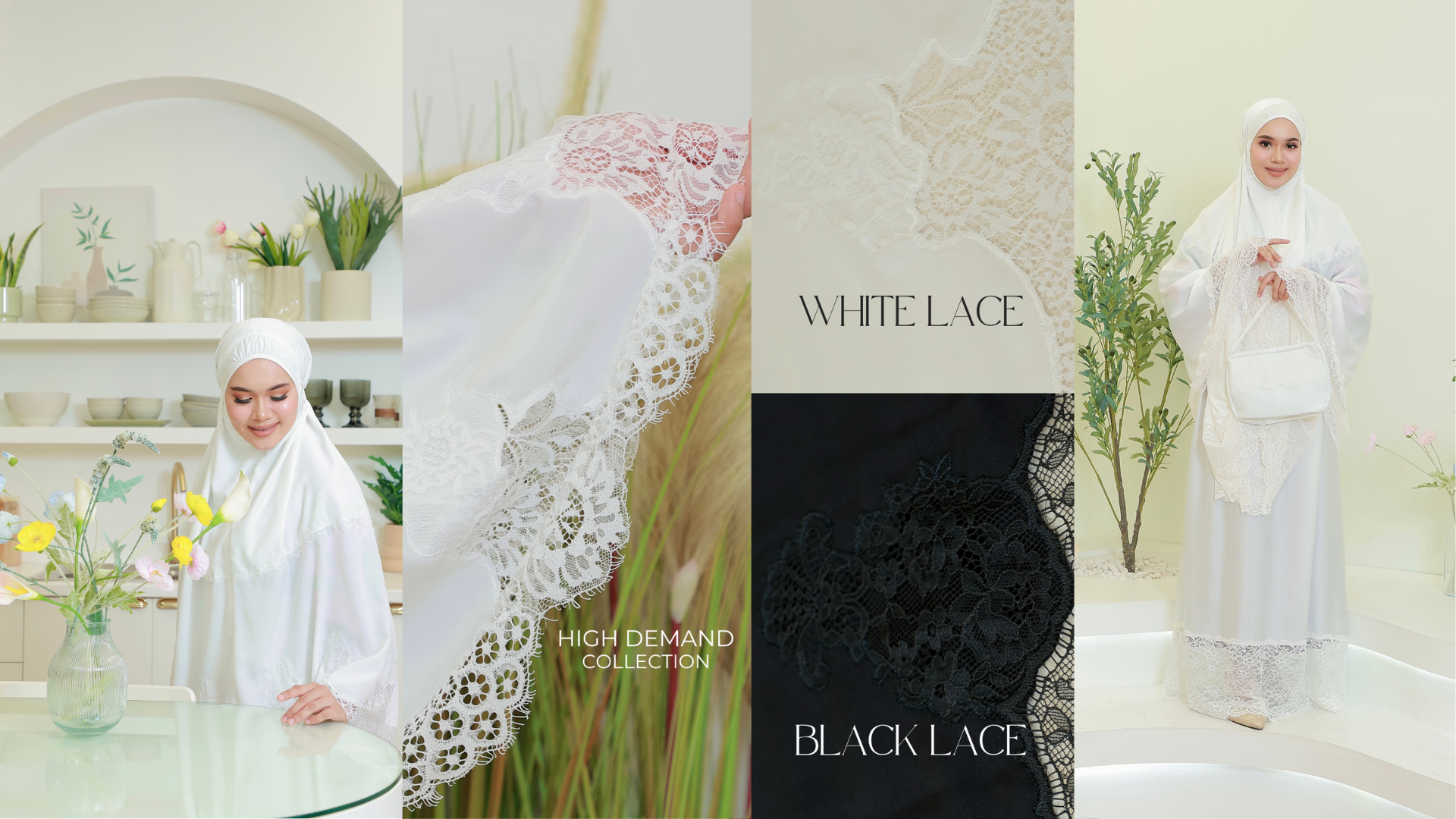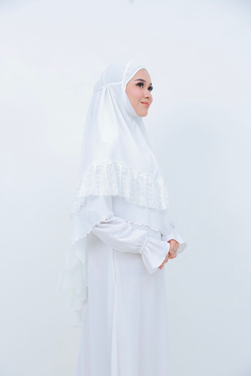 The most luxurious Telekung at Haliza Maysuri's telekung boutique. Using full lace material and armani silk fabric. This Telekung is adorened with full Swarovski crystals and comes with a pouch bag and mask.